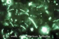 Cette nouvelle application dans le traitement des maladies parodontales s’est affirmée ces dernières années. On sait maintenant que seuls quelques types de bactéries définis et précisément connus mènent à la parodontite. Ces germes présents dans les poches gingivales peuvent également être identifiés à l’aide d’un test spécialement développé à cet effet. Cependant, la flore bactérienne présente dans les poches infectées se compose presque toujours du même type de bactéries. Le test bactériologique n’apporte donc pas forcément de nouvelles informations et peut être évité dans de nombreux cas.